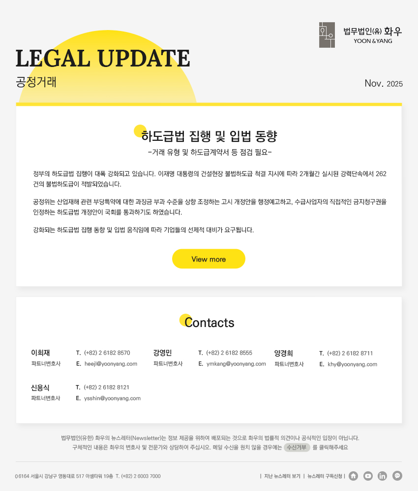 [법무법인(유한) 화우] 하도급법 집행 및 입법 동향