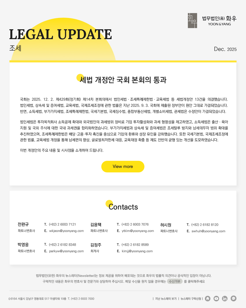 [법무법인(유한) 화우] 세법 개정안 국회 본회의 통과
